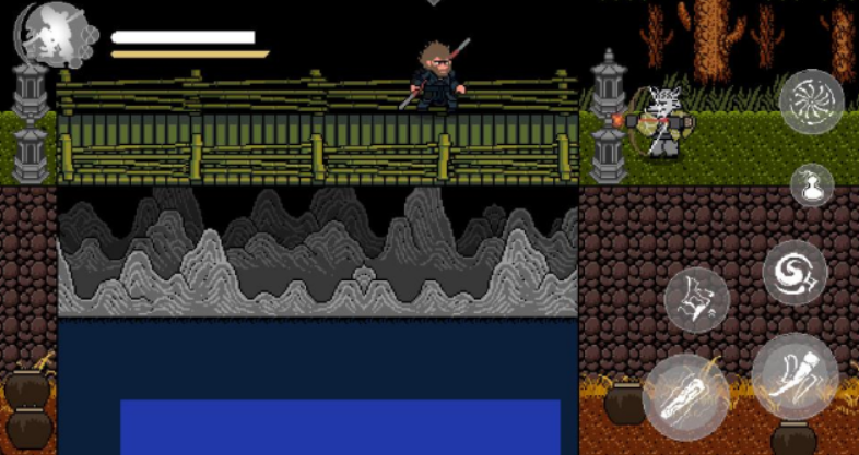 游戏中的战斗节奏相当紧凑,打击感极强。每当你蓄满棍势,释放一击重击时,那种击败敌人的快感非常到位。配合上8bit的复古音乐,让人不由自主沉浸其中。此外,游戏中的地图场景多样化,有森林、寺庙、妖怪洞窟等,每个场景都有独特的视觉表现和挑战。