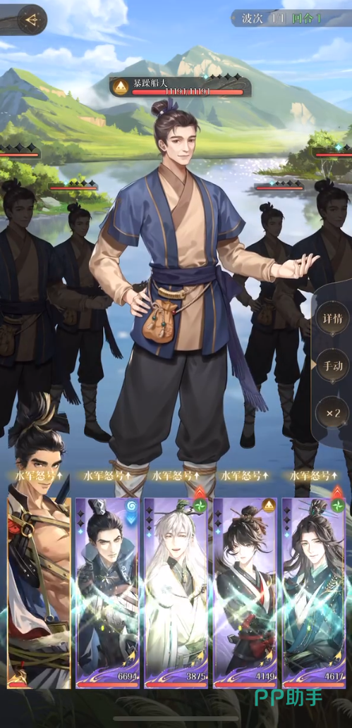 如果正好船夫是丝血,就直接让阿蝉攻击,毕竟她的追击可以额外在追击另一个敌人。第四回合陈登有大招,鲁肃与阿蝉放大,最好鲁肃能再劝退一个船夫,这样会更好打,第五回合船夫能量满了,这时候颜良一定要保证有大,不能输出,其余都防御;第五回合就可以正常慢慢打,基本8回合就结束了。