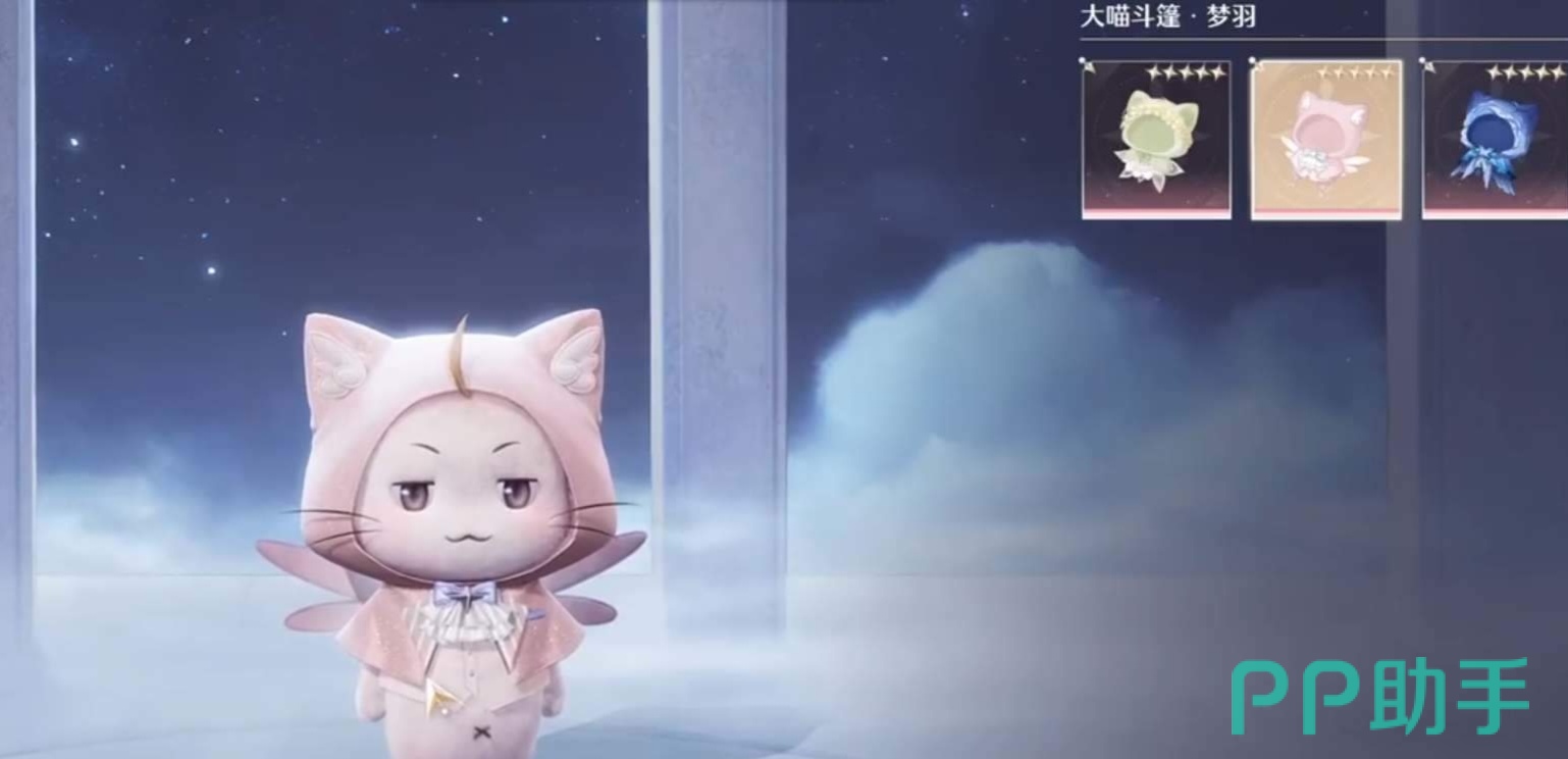 游戏里面大喵穿着的时装叫做斗篷,斗篷总共有三种类型,分别是迷蝶、梦羽以及花灵,这三种不同样式的斗篷都有三个颜色,分别是绿色、粉色以及蓝色,这三种不同样式不同颜色得到斗篷玩家可以自由的选择。