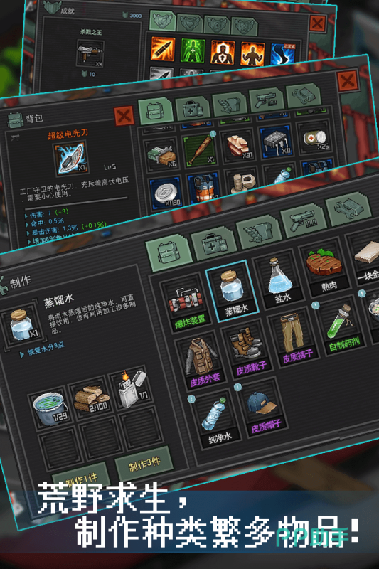 有一种全新的冒险体验,不知道的话可以试试这款《像素危城》手游,看看它的一个玩法是怎么样的,游戏内的怪物还是有很多的,它们分别有着不同的属性,这里面大家还可以不断地收集各种资源,你们就是这里的幸存者,找到那些有用的道具和装备,帮助各位在这里更好的生存下去。