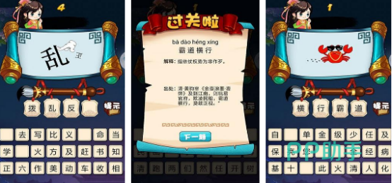 游戏带着玩家来到古代,拥有独特的江南水乡风格,玩法丰富,每个关卡都有相应的时间限制,按照剩余的答题时间迅速想到具体的答案。这款游戏带着玩家与时间赛跑,通过争分夺秒,及时答题完成闯关。当完成正确答案之后,还会提示出具体的典故以及背后的故事,随着时间的推移,从最初的小白蜕变成为成语大神。