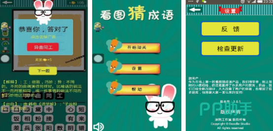看图猜成语游戏的可玩性极强,老少皆宜,是寓教于乐的不二选择,通过观察图片选择正确的成语,详细了解成语出处,可以学习,也能积累词汇,另外也能在观察图片时,提高个人专注力,消磨时间。