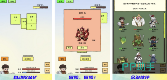 这款休闲游戏除了可以挖金矿之外,还能招募伙伴进行冒险寻宝建设建筑物。所收获的金矿以及资源都可以兑换成为金币,在之后创建家园时能够用上。游戏加入离线模式,在离线的情况下依旧能够轻松收益。这款游戏的可玩性极强,寻找到合适的位置。可以自动挖矿,还有超多不同的角色,除了传说小勇者之外,还可选择赏金猎人以及光辉天使等等。