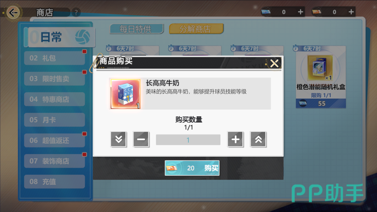 技能养成:如果抽到了重复的角色,或者是在商店去购买牛奶,都是可以升级球员的技能的,技能的升级是随机的,技能总等级达到4,6,8,10,12时,是有共鸣效果解锁的。消耗升技能的角色需要是相同的,牛奶的升级技能可以用,不分角色都能用,在商店可以分解SSR来获得分解券,等活动获取产出也可以。