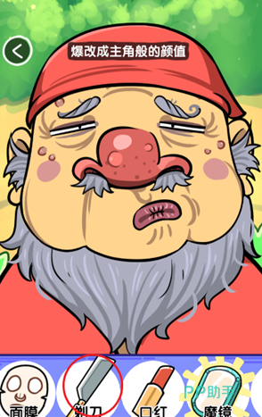 接下来我们要做的就是告别胡子,提升颜值。小矮人的胡子看起来有些杂乱,这时候你需要点击剃须刀工具,迅速滑动摩擦,剃掉那些碍眼的胡子让小矮人焕然一新,为后面的任务做好准备。