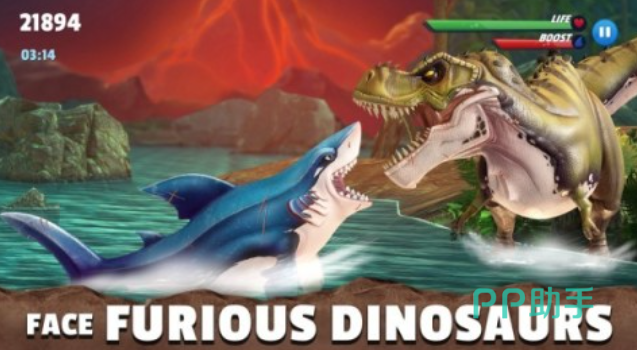 这款饥饿鲨IP手游会带玩家穿越回神秘的侏罗纪世界,各种远古时代的动物都会在这款吞噬游戏中登场,你也将化身强大的巨齿鲨在海底世界尽情狩猎,甚至能够跃出水面捕捉天上的翼龙,远古时代的背景极具视觉冲击令大家印象深刻,海洋生物和恐龙的种类更加丰富满足了许多玩家的要求。