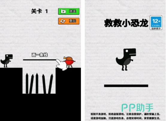 这款小游戏中同样可以看到特别简单设计的小恐龙,里面的主角也是这种小动物,主要的玩法就是在每个关卡当中,小恐龙需要玩家通过正确划线的方式帮助小恐龙可以跳跃障碍。在玩的过程中也会有很多的阻碍,看上去玩法简单,但是在跳跃各种鸿沟时,也需要玩家在划线时掌握方法动脑筋,这样才能够帮助解救里面的小恐龙,让它可以顺利的通关。