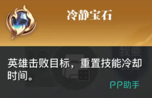 冷静宝石的效果是击败目标后重置技能冷却时间,将其给孙尚香带上的话,可以依靠其强大的输出能力在击杀敌人后可以立即刷新技能究极弩炮,从而在团战里面打出多套爆发伤害。
