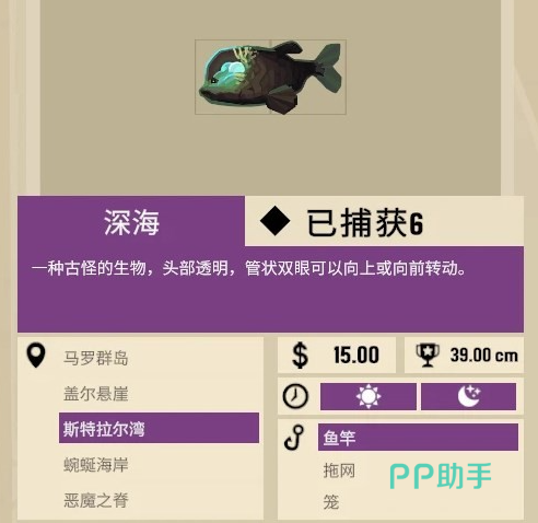 管眼鱼,这个也是一种深海鱼,也是这个海域比较多的鱼类,它的获取难度不是很高。狮子鱼,这个鱼类只能在海沟进行捕捉,本身的捕捉难度不算低,玩家们需要提前做好准备才可以将其钓上来。