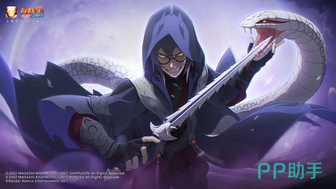 一技能“白蛇之剑”,挥剑上挑击飞敌人,释放强化一技能,上挑敌人后顺势将剑扔出并刺入地面,随后落地爆发出查克拉逐渐形成巨蛇形状,将敌人吞噬。二技能“白蛇擒鹰掌”,使用潜影蛇手向前抓取敌人,并将其砸向地面,随后掌击敌人。