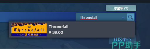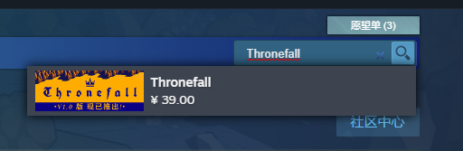 在Steam上的搜索方法是十分简单的,首先大家需要先登录进自己的账号并打开商店的页面,然后便能在搜索框中输入“Thronefall”这一游戏名称,点击搜索后,下拉页面即可找到该游戏的购买和下载选项,游戏目前已经有一万多人给出了好评如潮的评价。