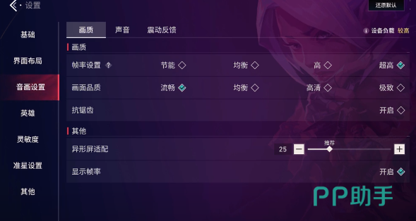 画面设置画面这方面的设置一般画面品质调到最低,帧率就会逐渐的提升,声音这一方面的设置就需要看个人的习惯。