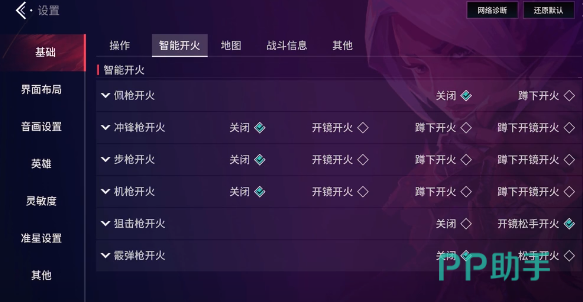 在开火时需要打开静步,如此操作就会变得更简单,别忘记还要优先选择最强武器,不然在使用完技能之后就会直接切到近战武器。机枪的设置,建议选择智能开火设置。