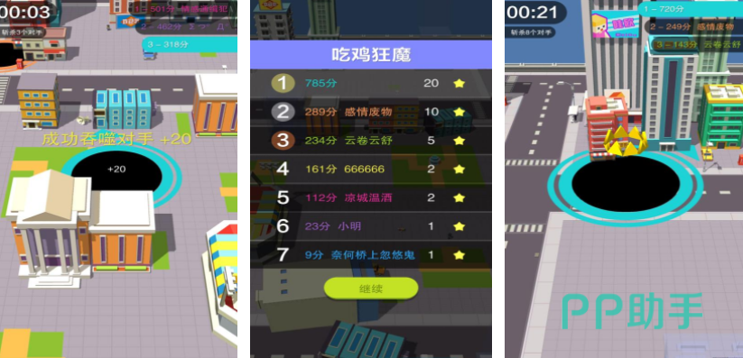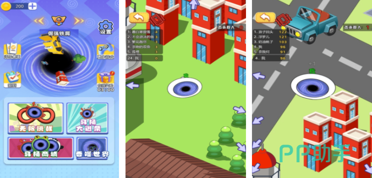 黑洞大吞噬是一个相对来说比较趣味的吃鸡战斗玩法,进入到这个游戏之后,玩家将会和其他的成员共同去扮演一个黑洞,需要在这座小镇中不断的去吞食物品,整体的物品数量是有限的,要在规定的时间内操控黑洞吞噬掉更多的物品,才能获得比较高的得分,画面的设计比较偏向于卡通风格,适合玩家通过这个游戏放松自己。