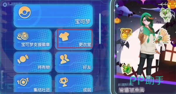 来到游戏主界面,点击左上角的训练师头像,然后会弹出个人信息页面,点击“更换服装”就会进入装扮屋,在这里玩家可以对自己的形象进行充分的自定义,包括但不限于帽子、上衣、下衣、袜子、鞋子等部件。