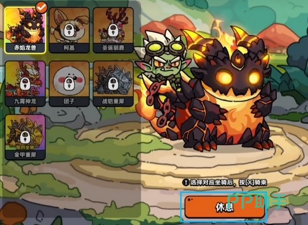 选择好要召唤的坐骑后,下方图标就会变为休息,如果有多个坐骑就可以在这里切换要使用的坐骑。随后返回主界面,按下“X”键,或者手动鼠标点击下方的图标,就可以将坐骑召唤出来了,坐骑会有自己的奔跑和待机动作。