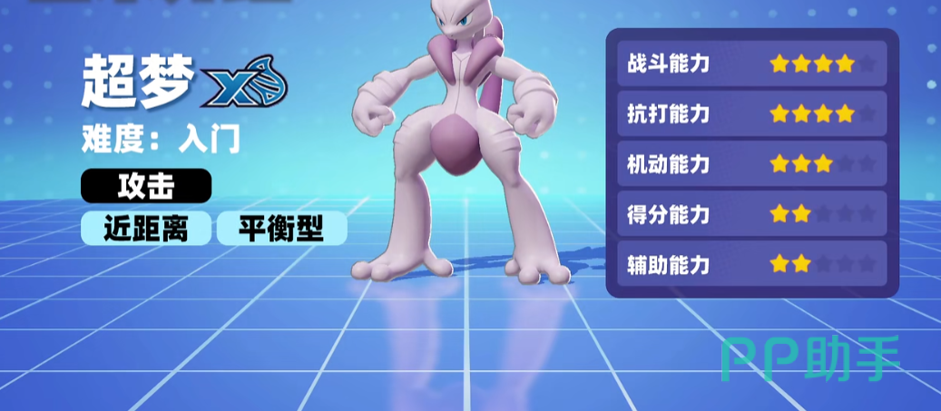 超梦在该游戏中其实是有两种不同的形态的第一种就是超梦X,这种形态的它能力相对比较全面,上手会相对简单,是擅长近战物理攻击的宝可梦;另一种则是超梦Y形态,该种形态下的它擅长远距离的特攻,对于不同形态的它选择的持有物也是不同的。