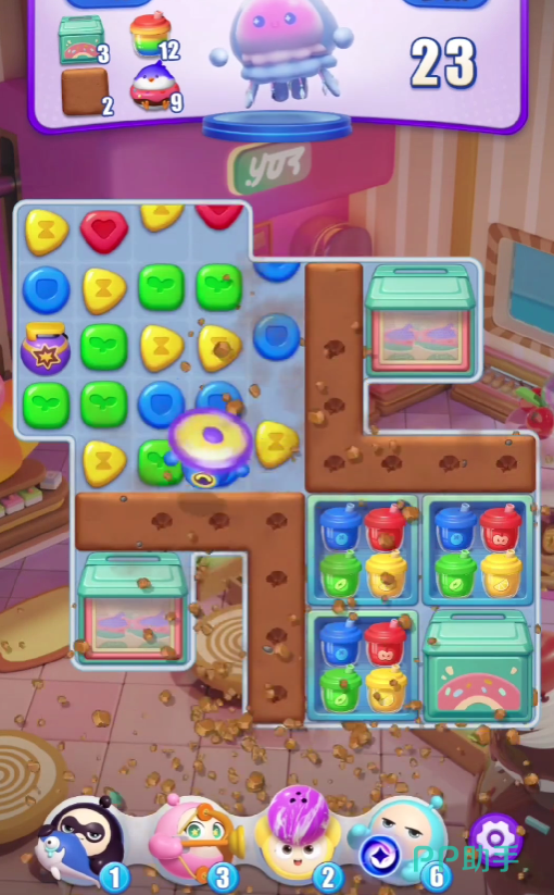 每一次的关卡挑战内,玩家都必须完成指定数额的消除,例如消除12个彩虹可乐,或者是消除两块巧克力,每一次的消除都有限定的消除次数,例如在后续的关卡之中,玩家必须在二十次限定次数之中,完成60次物品的消除,可以说是难度比较大了。