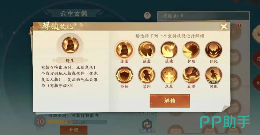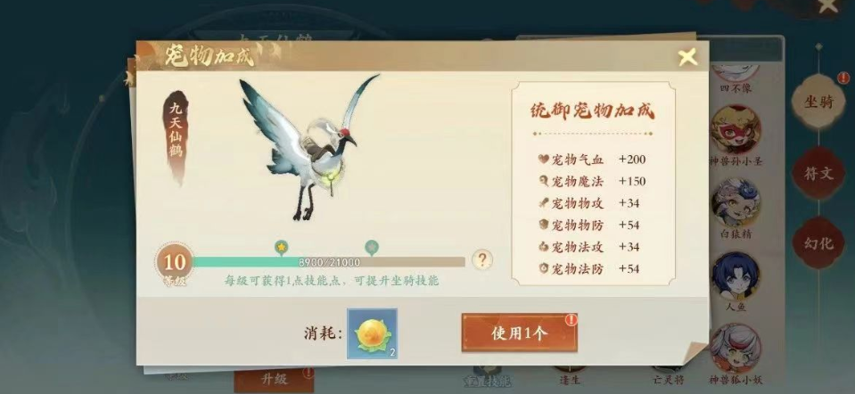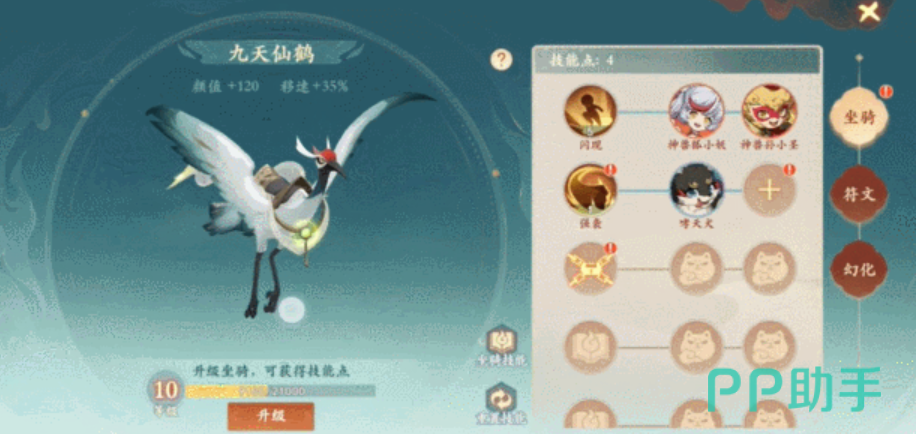 获取坐骑的基本途径包括完成特定的主线任务和参与各类限时活动。在游戏初期,玩家将通过主线任务获得第一个坐骑,要求是等级达到58级,然后就能使用坐骑了这时候能拿到免费送的云中玄鹤。这只仙鹤仙气十足也能像其他坐骑一样其使用万灵果进行再度升级。万灵果的获取途径多样,包括日常任务、商城购买以及积分兑换等。每升一级坐骑即可获得一个技能点,用于解锁和提升坐骑技能。小编推荐优先考虑的技能有闪现、狂化、禁闪和逢生,这些技能在战斗中都有非常不错的机制优势。