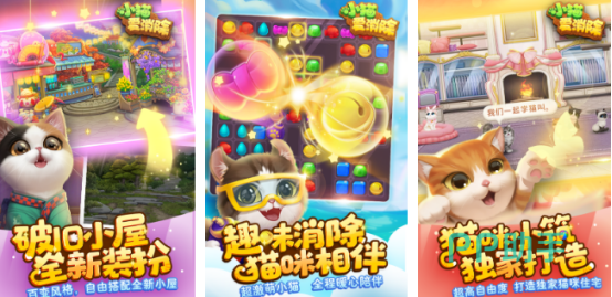 小猫爱消除是画风可爱的消除类游戏,其中将多种玩法完美结合,比如有趣味消除以及猫咪养成的玩法。在一个充满猫咪的环境当中,您可以选择自己喜欢的猫咪种类,需要经过精心的呵护以及仔细的喂养,让猫咪一直陪伴在自己的身边,可以解锁更多消除的关卡。
