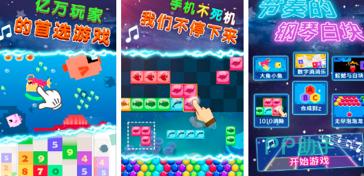 钢琴白块游戏通过点击钢琴块来完成演奏,沉浸式参加钢琴演奏的挑战吧!将每个钢琴块进行观察,提前预判之后再点击正确的方块。演奏优美的乐曲,还有打砖块或者泡泡龙以及经典消除的玩法,凭借观察完成来获得金币。轻松解开更多的关卡哦!每个都是好玩的模式,上亿的玩家都在挑战让你停不下来,快来点击钢琴白块或者消除游戏来闯关!
