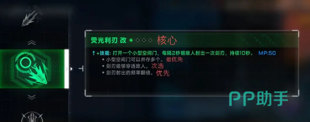 接着就是最重要的潜能,推荐大家选荧光利刃.改或唤剑 改·极乐世界,荧光利刃可以打开一个自动发射索敌剑刃的空间门,从而解放玩家的攻击操作,全程保命,唤剑 改·极乐世界可以强化荧光利刃的效果,同时打开多道传送门,提高输出能力。