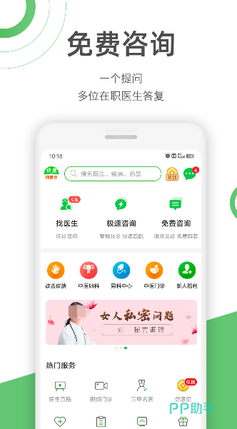 快速问医生这款软件是一款能够实现在线随时咨询的App,软件中各位用户能够快速的对接到更多的专业医师渠道,能够帮助大家更好地了解自己的皮肤问题状态,并且这款软件推出全新的扫一扫功能,能够让大家通过扫描识别照片的形式来实现皮肤状态的初步问题上传,上传以后系统会根据强大的数据库资源来进行皮肤的科学分析。