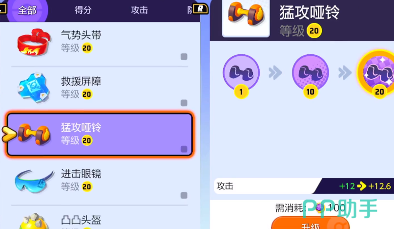 索罗亚克最推荐的持有物是猛攻哑铃,这是一个能提升角色物理攻击的持有物,虽然角色本身的攻击力已经比较优秀了,但是增加这个持有物之后能让角色有更加优秀的表现能力,不过需要注意的是想让角色使用这个持有物,那么每一次得分成功之后才能得到攻击力的提升。