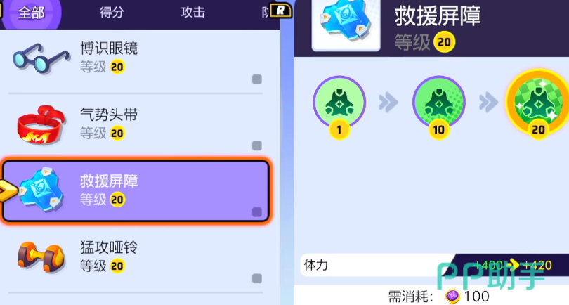 然后比较推荐的持有物就是救援屏障,这个持有物的作用主要是为了提升角色的体力,索罗亚克是一个刺客类型的角色,想要有更加优秀的表现,体力也是必不可少的,可以借助救援屏障去提升角色的体力,另外就是推荐玩家使用讲究眼镜,一旦使用这个持有物质和角色在游戏里如果能给伤害,那就可以再次追加一定的伤害点数。