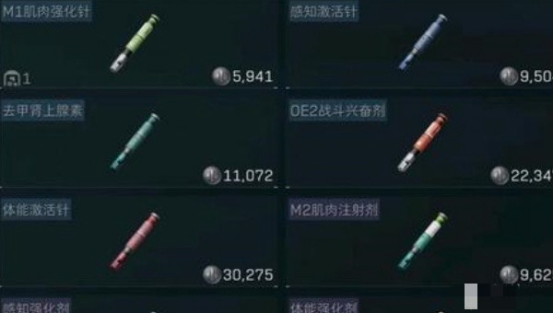 最后一类就是可以带来增强属性效果的甲肾上腺素和肌肉强化针,使用甲肾上腺素可以在短时间内增加玩家角色的奔跑时间,适合在快速移动和逃跑时使用;而肌肉强化针则是可以减缓角色耐力的下降速度,对负重能力也有一定的提升,当玩家携带着大量的物品或需要大量消耗体力时,就可以使用它。