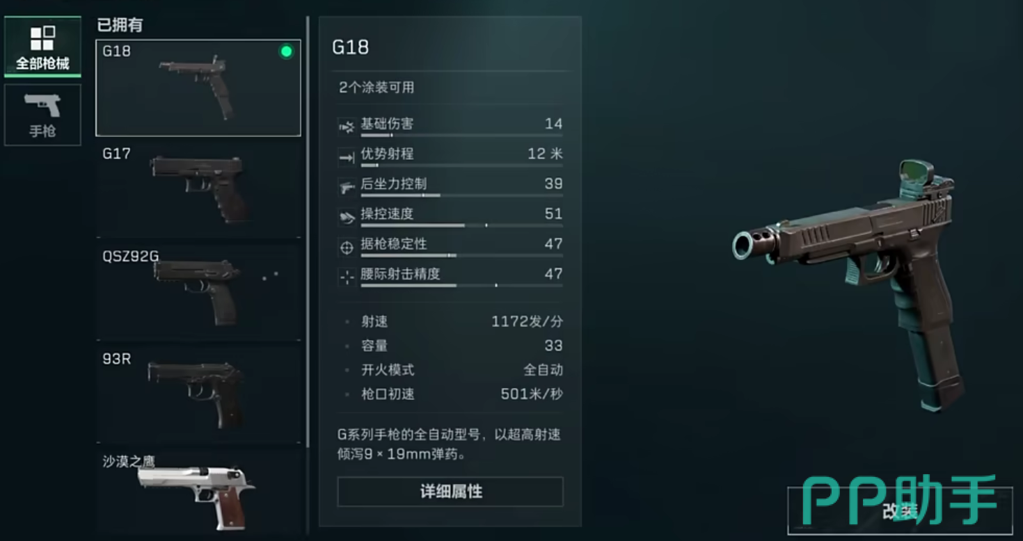 以上内容就是本期小编给大家带来的三角洲行动G18改装攻略的全部内容了,值得一提的是G18这把手枪只适合近战作战,距离稍远一点G18可能就会落于下风,如果玩家的地图巷战和房屋占比较多,可以直接选用G18作为自己的主武器,希望看完本期内容的小伙伴们可以直接进入到游戏内体验一下哦。