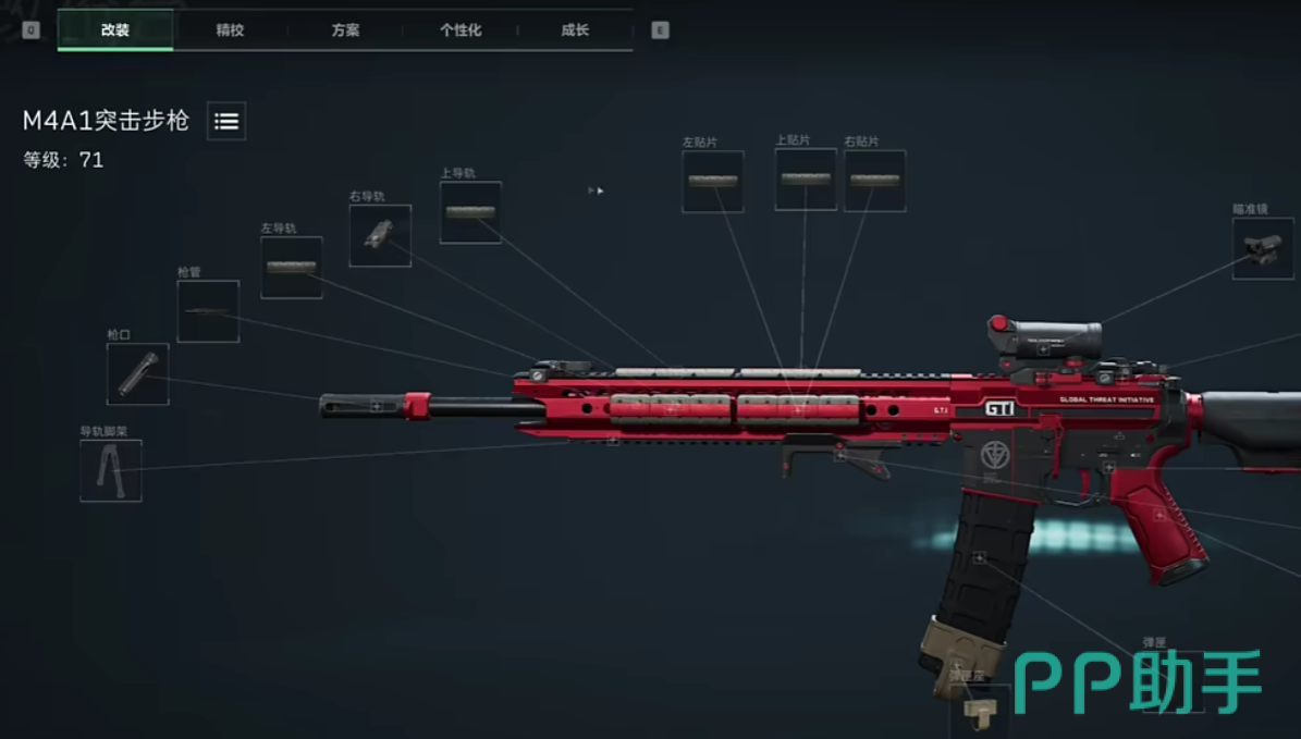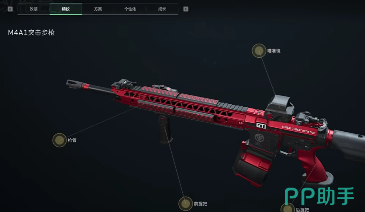 如果想要让M4A1发挥更强的攻击水准,建议玩家在这四个方面进行改造,它们分别是枪口、枪托、弹匣、枪把,在枪口方面,建议玩家选用消音器和消焰器,由于M4A1的爆发性比较强,在大战场战斗当中,很有可能惊动敌人,所以给他改装消音器会极大地提升它的隐蔽性,消焰器可以减少枪口的火焰,提高精准度的同时,还能够减少自己暴露在敌人视线前的危险。