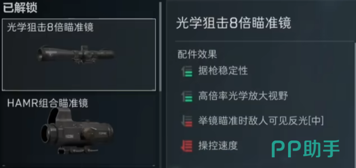 而枪口方面,小编为大家推荐的是实用消焰器。不过实际上这也并不是唯一的选择,如果小伙伴们有其他比较用的顺手或者效果更好的,也可以自行选择。左右导轨镭射在对狙的时候实际上的作用不太明显,因此小伙伴们不带也是可以的。上导轨可以选择组合护木,另外再带上一个光学狙击8倍瞄准镜,这把武器基本上就改造完成了。