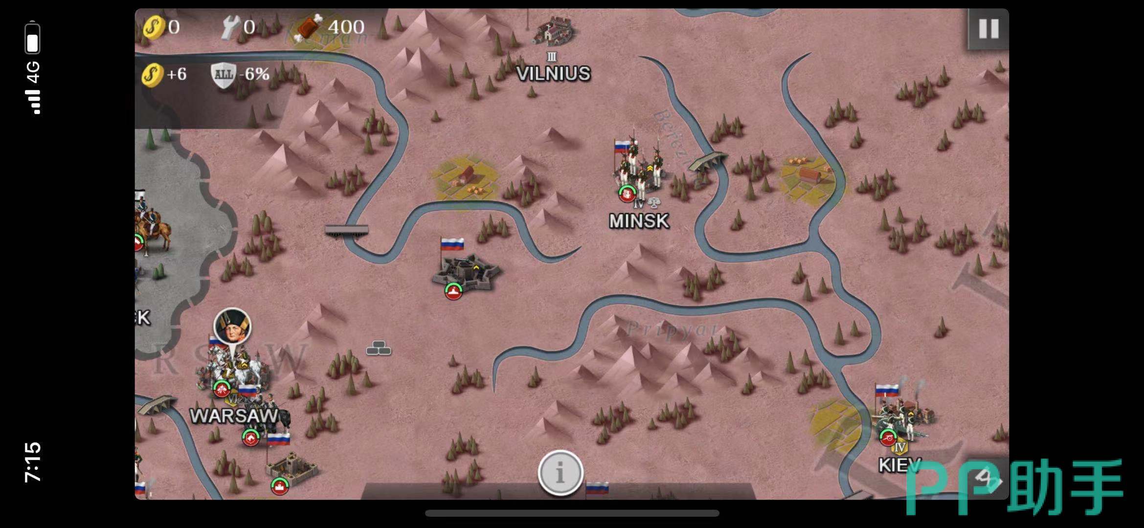 打过这关的重要一点就是要得到布吕歇尔的帮助,布吕歇尔是个非常强大的将领。玩家派一小支部队去吸引敌军的部队,把敌军的部队引到基辅,这样布吕歇尔就会自北向南移动来帮助玩家了。