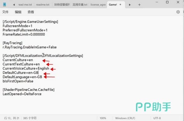 DefaultCulture和DefaultLanguage的值都改成“en-GB”,然后点击记事本左上角文件-保存,再关闭记事本。随后启动游戏,就可以看到虽然界面还是中文,但干员的语音已经变成了英文配音了,大家可以切换干员或是去游戏中体验一下。