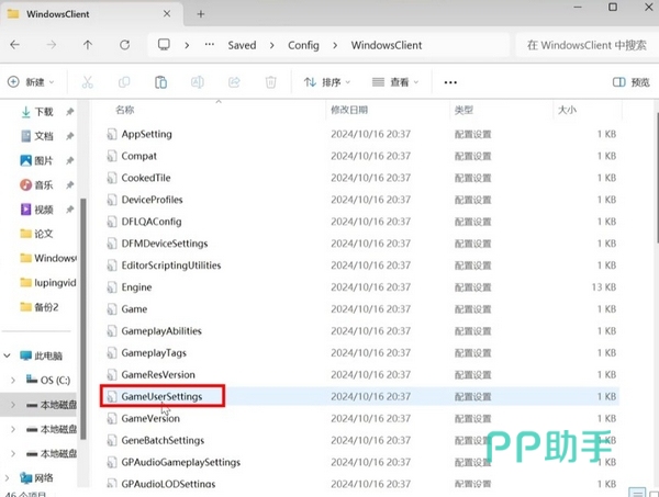 首先如果下载的客户端没有英配语音包,需要手动下载,然后找到三角洲行动的配置文件所在路径,一般是在你的安装盘下,依次找到Delta Force\Saved\Config\WindowsClient,在该文件夹下找到名为“GameUserSetting.ini”的配置文件。