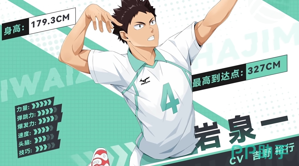 在游戏中岩泉一的定位是副主将兼主攻手,能力上面也是很不错的,可以说岩泉一在游戏中的强度跟动漫中也是差不多的,这个名字在原来的动漫世界中就有很多观众熟悉,他不仅拥有惊人的力量,更以精准的扣球技术在球场上面获得了很多的得分,也被誉为赛场上的“王牌”角色,在预选赛的激烈角逐中,他凭借出色的表现脱颖而出,成为了无数排球爱好者心中的偶像。