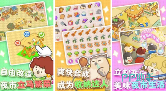 欢乐消消消这是一款超级解压的游戏,小学生当结束了一天的紧张学习之后,也可以通过这款游戏来放松心情,在这一款游戏当中,玩家将会看到很多玩法,比如自由改造以及爽快合成等等。当玩家选择了自由改造的玩法之后,通过自己的想象力和动手能力就能让夜市变得更加繁华。
