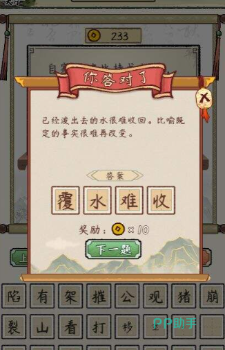 游戏可不仅仅是娱乐那么简单。在玩的过程中,还能深入学习到各种各样成语背后的含义,以及它们适用的场景。游戏中的每一个成语都配有图文解释。这些图文就像是一把把钥匙,帮助开启了解这些成语产生环境和背景的大门,仿佛穿越时空,置身于成语诞生的那个时代,深刻体会到成语所蕴含的深厚文化底蕴。
