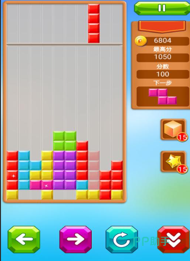 每一次方块的掉落,若玩家未能合理布局,这些方块就会逐渐叠加起来。随着时间一分一秒地流逝,叠加的方块会越堆越高,一旦触碰到屏幕的顶端,闯关便宣告失败。玩家在游戏过程中,需要充分运用自己的智慧,精心规划每一个方块的放置位置,只有这样才有可能获取更高的分数,进而顺利通关。