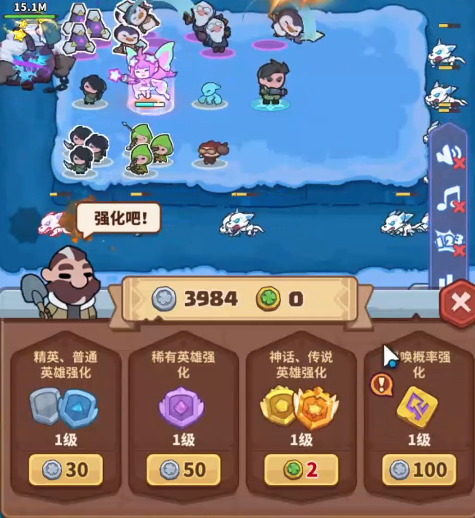 游戏里的主线挑战大部分都是对战设定,在初期玩家需要做的就是多去用银币去提升这些角色的等级,等到有了足够多的资金之后就能多去召唤一些英雄,这样就能更加快速的击杀boss,每击杀一个boss都能掉落幸运币,幸运币可以在游戏里参与角色的抽取,角色越多在对战过程中的速度就会越快。