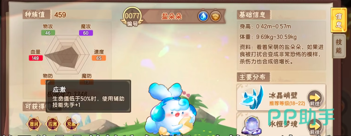 不过建议小伙伴们要想抓该角色的话可以前往涌动之村的冰晶峭壁当中进行抓取,这里的颜朵朵整体的资质还是非常高的,在补货的过程当中建议玩家们尽量去选择生命,物防,魔防都在25左右的颜朵朵在后期也是比较好练的,整体的资源消耗不会太高。