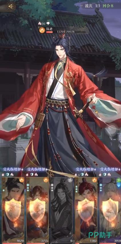 推荐的角色阵容是:吕蒙+孙尚香+陈登+孙权+史子眇。因为会限定角色等级为40级,所以也会给角色修为+5。因为陆逊会固定攻击3号位角色,所以第1-3回合,除了3号以外的密探都出普通攻击,保存实力。到第4回合,陆逊放大招的时候,陈登吸引火力被放逐,其他人下拉防御。第5回合使用孙尚香和孙权的大招,然后史子眇辅助回血。第6回合正常攻击,有大招就放。第7-8回合,如果孙尚香血量低,先让孙权吸引火力退场,然后第9回合孙尚香直接开大招,如果成功刷出暴击,就胜利。不行就再打几个回合。