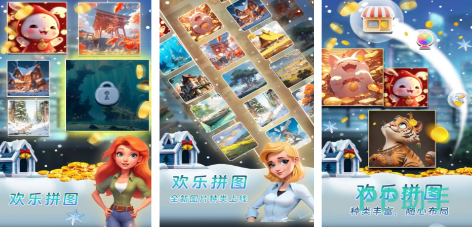 欢乐拼图是一个设定非常轻松有趣的拼图游戏,这个游戏使用的是相对比较立体的画面呈现,在这个游戏里,玩家可以在多种不同的风格类型中挑选自己喜欢的,既有一些经典的古代场景,也有很多可爱的动物,不管选择哪一个都需要玩家把这些复杂的拼图碎片复原,既能在这个过程中锻炼自己的脑力,同时又可以通过游戏里设定的这些美景来放松自己。