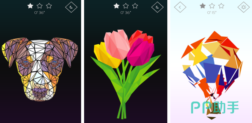 一般拼图都是在平面上把这些图片拼接出来,通过立体艺术拼图这个游戏所有的图像都会变成立体的设定,游戏开始之后,屏幕上是非常杂乱的碎片,玩家只需要在这时候旋转屏幕调整这些碎片的角度即可,旋转到特定位置之后,一幅立体的画面就会直接出现在游戏里。