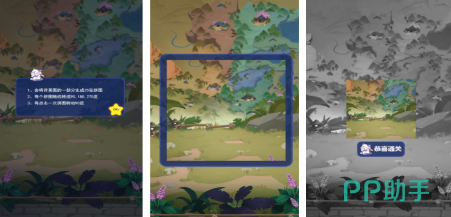 拼图是非常开发和锻炼玩家脑力的,在非一般拼图里会呈现一个比较古典的水墨场景,游戏开始之后会随机的在水墨场景里选定区域,并且把这个区域分割成25个拼图,玩家需要做的就是比对背景,把这些拼图调整不同的角度,这样才能复原杂乱的图片,这种拼图玩法会比传统的拼图难度更高一些,更需要玩家在游戏里充分的动脑。