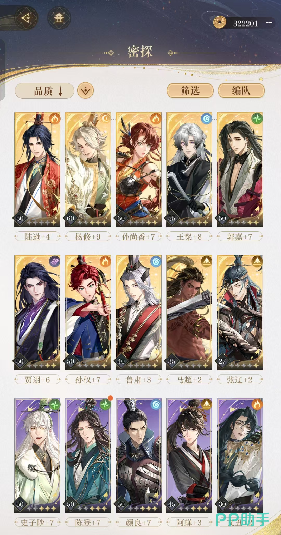 在《如鸢》中,陆逊和江东池中的孙尚香一样,是一个火属性破军角色,对风属性的密探具有一定的克制能力。天赋“烈火为盾”中明确表明,陆逊有25%的概率对当前攻击目标附加一层“火种”,如果队伍中存在吕蒙这个角色,那么吕蒙的每一次普攻都会给攻击目标附加一层火种。所以在实战中,将吕蒙和陆逊一起使用往往可以得到更好的效果!