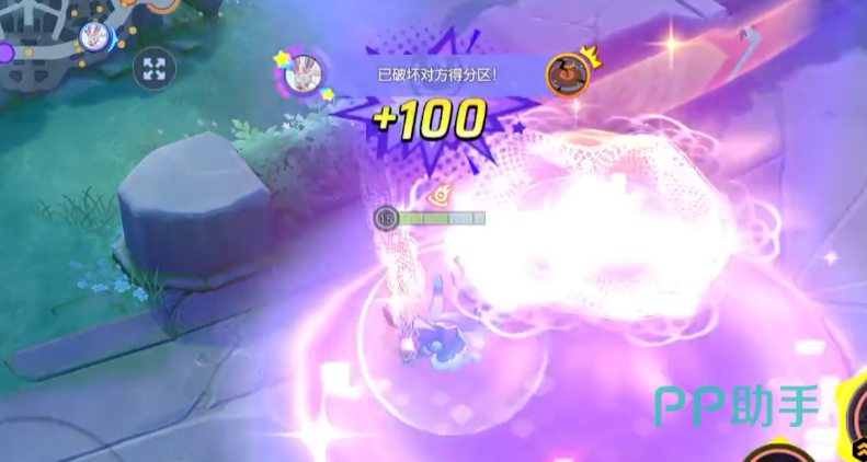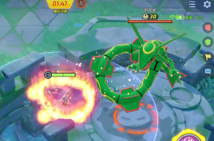 宝可梦大集结里的宝可梦技能招式,对部分boss是有抗性的,有的还带有控制。每个地图刷的BOSS是不一样的,这里刷的是裂空座,打掉之后就会给盾,并且给的盾耐久非常多。同时, 还会提升玩家投分的速度,而且还会在最后冲刺阶段得分翻倍。例如满分是50分,获得击杀boss得到的buff之,投分直接翻倍到100。