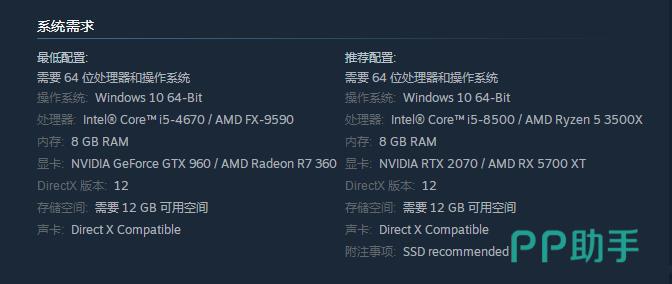 为了流畅运行这款游戏,官方给出的配置要求,最低配置需要i5-4670同级CPU和GTX960同级显卡,而推荐配置更是需要i5-8500同级CPU和GTX2070同级显卡。这样的配置要求,对于想要体验极致画质的玩家来说,无疑是一个不小的挑战。然而只要电脑配置达标,玩家就可以尽情享受游戏中的各种细节和精彩瞬间。
