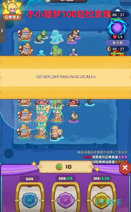 其实在游戏当中建议玩家去准备足够多的银币一般在第一局通过4+4模式15猫,12币和12妖精就可以快速通关,而且要想高效通关的话,还可以召集自己的线上好友来进行帮忙,这样就可以实现轻松拿捏。第一局建议玩家直接打开祈愿池,利用祈愿币尽量去召唤较为强大的领主,每次召唤大概需要花费一个币。
